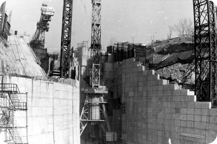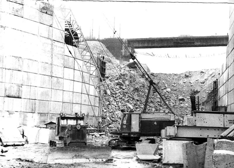 Стрічку біля воріт верхнього б’єфу перерізає один із героїв головного запорізького будівництва десятиліття – бригадир комсомольсько-молодіжної бригади В.А. Жила. До речі, як доповідає управління будівництва «Дніпробуд»: «Під час будівництва нового шлюзу було обрано півтора мільйона кубометрів скелястого ґрунту. У скелю вмуровано 800 тонн металу».