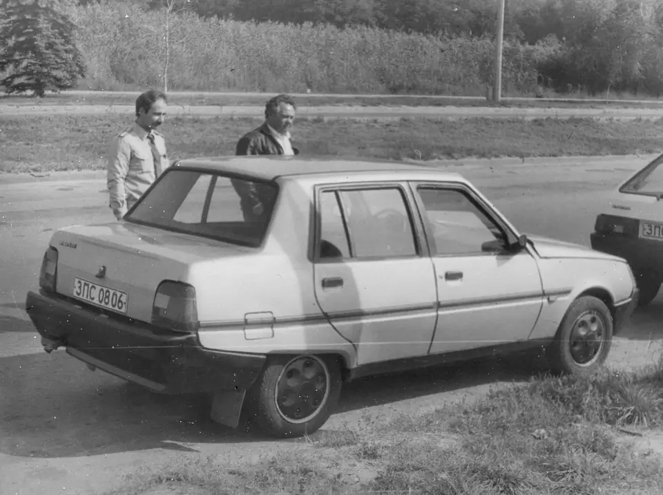 Початок 1990-х. ЗАЗ-1103 ще у вигляді седана. Праворуч – Леонід Левіт, один з розробників “Славути”.