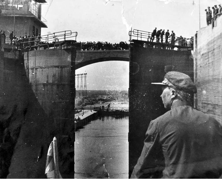 23 травня 1933 року – ще одна знакова дата історії Дніпровського шлюзу. В цей день нещодавно відкритим шлюзом у Запоріжжі пройшов пароплав «Клара Цеткін» із великою баржею, який прямував із Херсона до Києва. Ця подія стала початком вантажної експлуатації шлюзу.