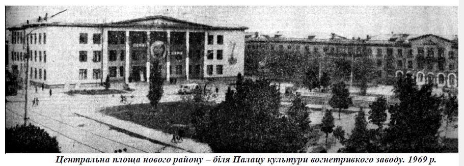 «Район було забудовано в основному будинками барачного типу та каркасно-насипними будинками, побудованими у свій час як тимчасове житло. Було всього шість п’ятиповерхових будинків на вулиці Союзній», – розповідає у книзі «Заводський район міста Запоріжжя…» запорізький історик Руслан Шиханов. Серед вже наявної інфраструктури нового району – 2 лікарні, пологовий будинок, 10 дитячих дошкільних установ, 17 шкіл, новенький стадіон «Титан», кінотеатр «Авангард», Палац культури імені Горького, Палац культури вогнетривкого заводу…